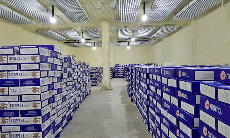 将包装好的海产品放入速冻库进行冷冻,能够在第一时间锁住原材料的品质以及鲜度